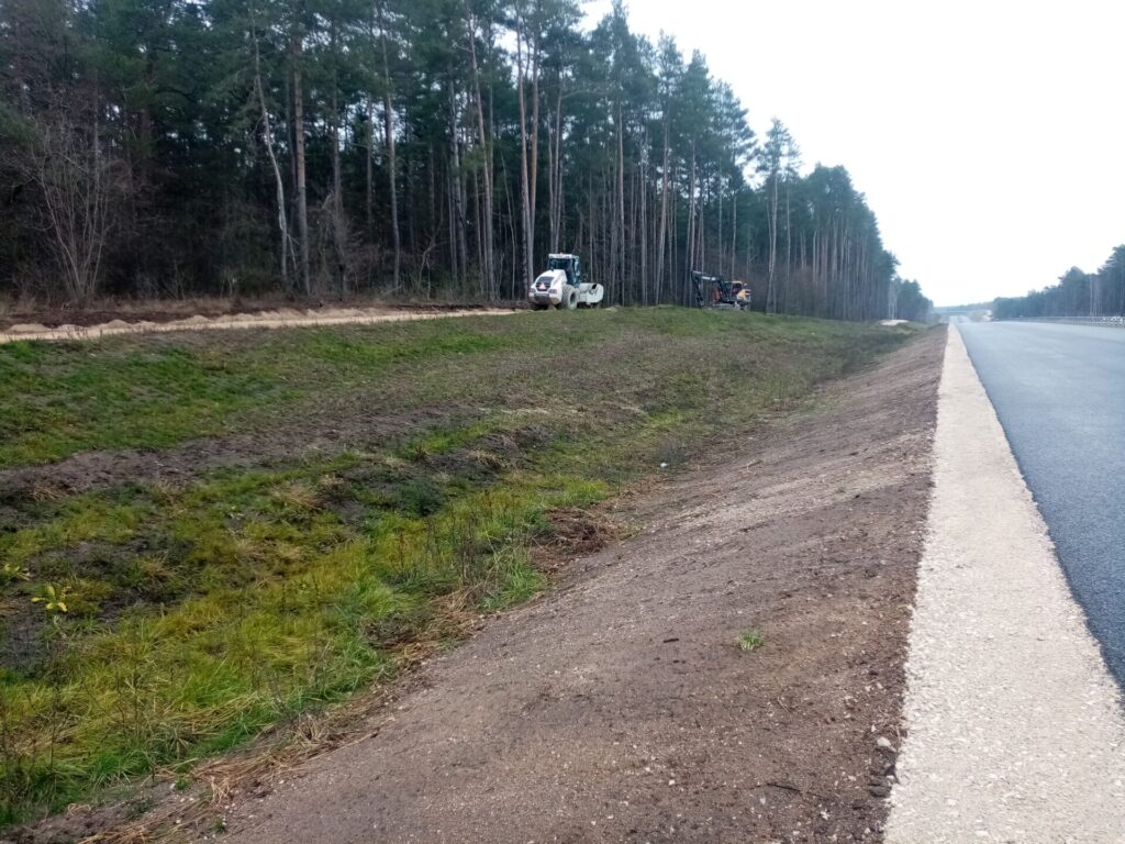 Uzupełnienie humusem skarp km 34+300 strona prawa