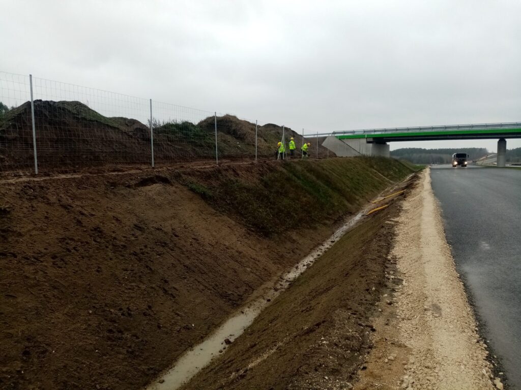 Zakładanie siatki ogrodzeniowej km 35+650 strona lewa
