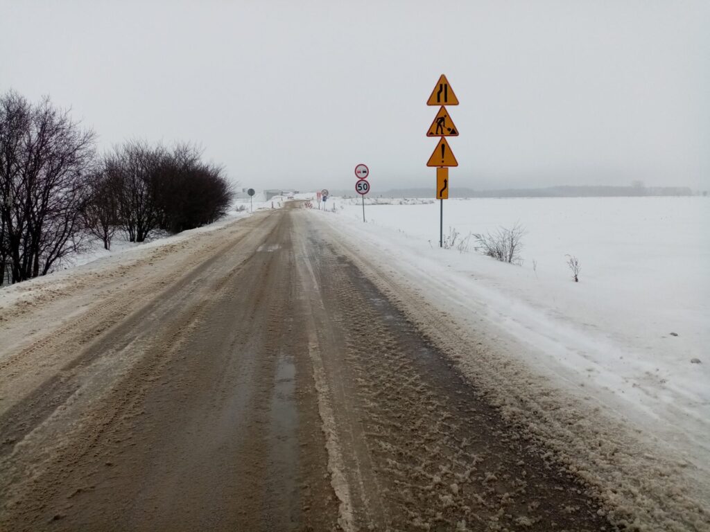 Roboty przy zimowym utrzymaniu objazdu km 36+200